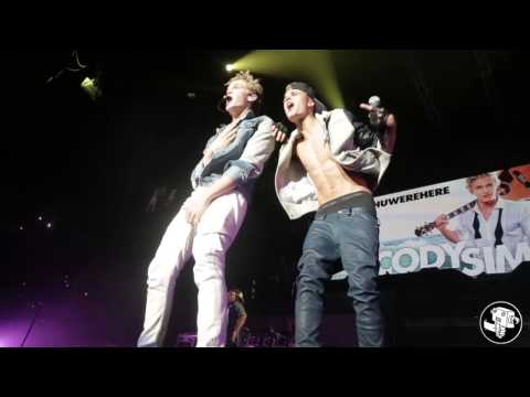 Justin con Cody Simpson en el escenario juntos, en París. (19 de marzo)